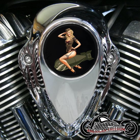Custom Derby Cover - Pin Up Blond Bomber Girl On Bomb