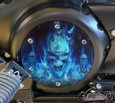 SUZUKI M109R Derby/Engine Cover - Blue Flame Skull