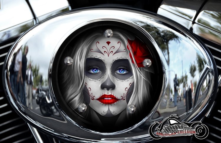 Custom Derby Cover - Day Of The Dead Bandita Blue