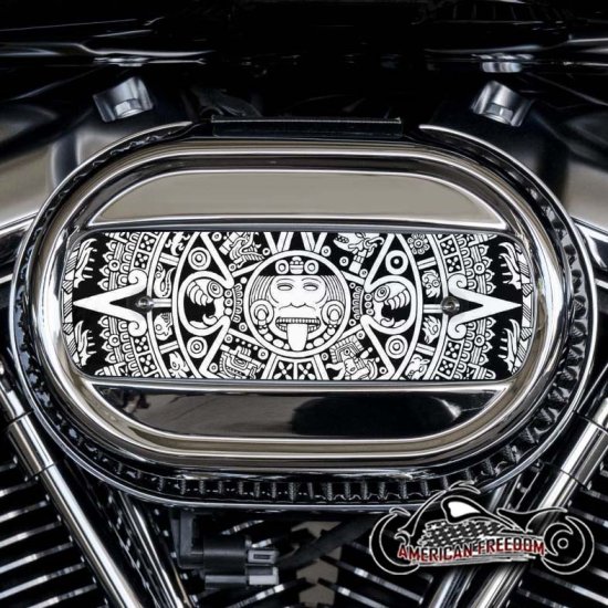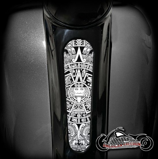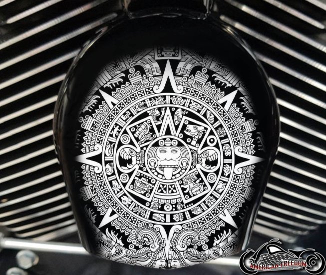 - The Aztec Calendar is a legendary symbol of strength, history, and tradition, making this horn cover an eye-catching statement piece for your Harley.