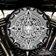 Embrace the rich history and mystique of the Aztec civilization with this custom handmade Harley Davidson cowbell-style horn cover. Featuring a highly detailed Aztec Calendar on a striking white background, this horn cover is a bold statement piece that blends cultural heritage with modern craftsmanship. Made from durable aluminum with a hard-coated finish, it seamlessly replaces your stock cowbell or waterfall-style horn cover, fitting various Harley Davidson models. Available in glossy and matte finish choices, this unique design is handcrafted in the USA by skilled artisans in a small business dedicated to quality.