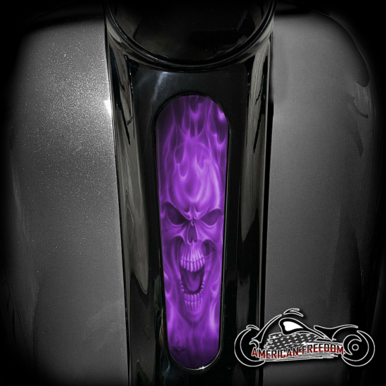 Harley 8 Inch Dash Insert - Purple Flame Skull