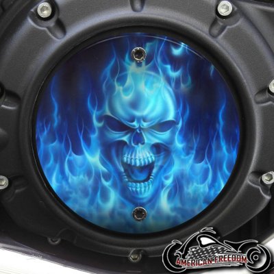 Indian Scout Derby Cover - Blue Flame Skull