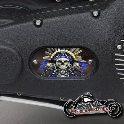 Custom Oval Inspection Cover - Native Skull Blue