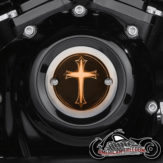 Chrome Harley Davidson Timing Cover - Glowing Cross Orange