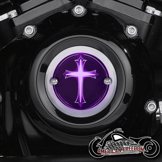 Chrome Harley Davidson Timing Cover - Glowing Cross Purple