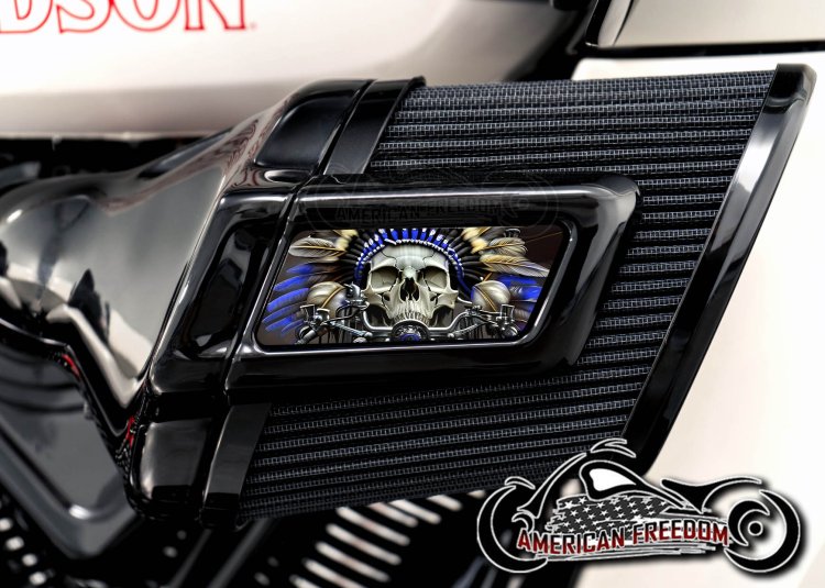 Harley 2025+ Heavy Breather Insert - Indian Skull Blue