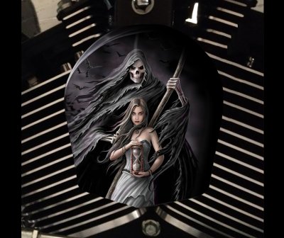 Custom Horn Cover - Reaper And Girl With Hourglass