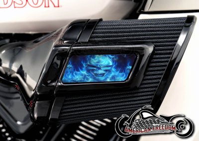 Harley 2025+ Heavy Breather Insert - Flame Skull Blue