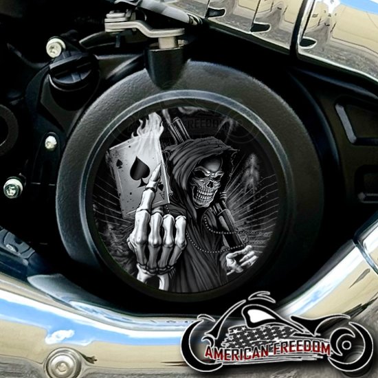 Indian 2025+ Scout Derby - Reaper With Flaming Ace Card (B&W)