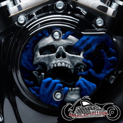 Harley Davidson VVT Cam Housing Unit - Torn Apart Skull Blue