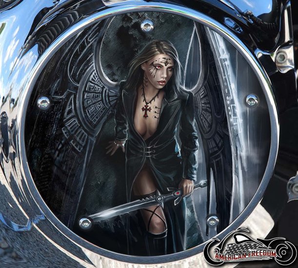 Elevate the look of your Harley Davidson with the Goth Girl 1 handmade Derby Cover. Each one of these custom covers is crafted to order, giving you a unique and personalized touch for your motorcycle. With a production time of approximately 3 to 5 business days, you won't have to wait long to receive your new derby cover. Designed to fit Softail, Dyna, Touring, Trike and Sportster models, this high-quality accessory is a must-have for any rider looking to add some extra style to their bike. Upgrade your Harley with the Goth Girl 1 derby cover and stand out on the road.